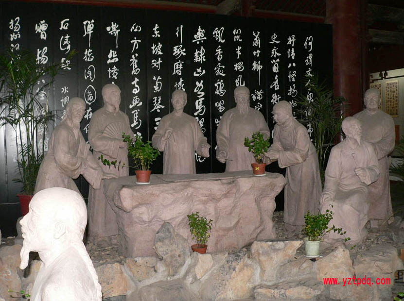 鄭板橋】(1693~1765興化市(原屬揚州)人。“揚州八怪”代表人物之一。17歲讀書于真州(今儀征)毛家橋,20歲從鄉里陸種園學填詞,23歲于鄉里及真州江村教館。其時已中秀才,教書非其所愿,約于30歲前后至揚州謀生。30~40歲間,父親、兒子、妻子先后去世,家境艱難,靠賣書畫度日。40歲時,應試南京,中舉。44歲時去北京應試,中二甲第八十八名進士。乾隆七年(1742)春,任山東范縣(今屬河南)縣令。十一年(1746),調署山東濰縣。次年,該縣遭災,他開倉借糧于民,并令富戶平糶所積之糧。任中處理民事,多助窮苦百姓,不幫富商,因之得罪豪紳,于十八年(1753)被罷官。回揚州后,以賣字畫為生,晚年回興化。鄭板橋
