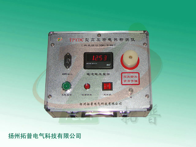 TPYDC高壓驗電器檢測儀其原理是模擬實際驗電現場的真實狀態,遵循其驗電場的自然規律。信號發生部分(信號發生器模擬高壓交流信號)與信號接收部分(高壓驗電器)必須是單獨的二個獨立體,這二個獨立體均以共有的零電勢場(大地)作為基準點,無論是信號發生方還是信號接收方,它們之間的能量傳遞都是以零電勢場(大地)作為參照點的,當信號發生方(模擬交流信號輸出端)與信號接收方(驗電器的輸入端)接觸并連為一體時,其雜散的電容電流就通過各自的空間場對大地形成閉合回路,當其雜散電容電流達到設定的門坎值時,即起動聲光報報警電路。每一額定電壓等級的驗電器分別有其各自的啟動門坎值,要真正完成全回路自檢功能,真正做到模擬、等效的功能,模擬信號發生器在驗證同一電壓等級驗電器是否完好可靠時,必須按照實際驗電器驗電的操作模式進行,拓普公司生產的高壓驗電器檢測儀利用微電子能量轉換技術達到了上述的相關功能,能完全模擬、等效實際驗電狀態(包括空間場的全回路檢驗功能)。高壓驗電器發生器的能量輸出僅與被檢驗電器的電容電流整定門坎相關,沒有危及人身的高壓輸出,其輸出電流能量限制在微安級以內,發生器工作電壓為4.5V,動態功耗≯0.1W。
